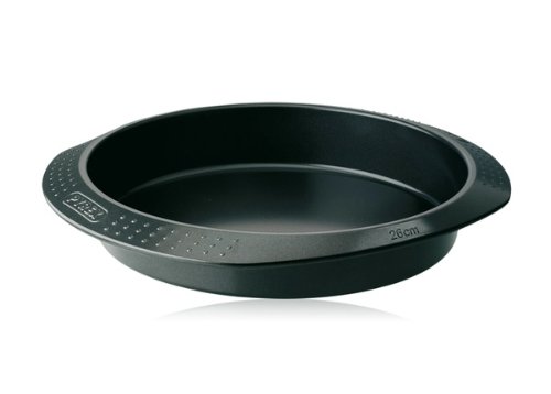 26cm cake pan made of carbon steel is 0.4mm thick, it has a silicone polyester non-stick coating, this item can withstand temperatures up to 230°, the diameter is 28cm, it is oven and dishwasher safe and has a 5 year guarantee.