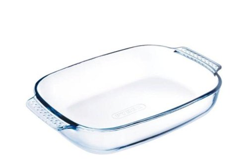 Pyrex glass roaster 35X23 cm. Pyrex glass cookware offers a wide range of of high quality products, identified by an azur tint glass. Its heat resistance (up to 300°C) allows you to use it safely in the oven and micro-wave. Its non porous and stain resistant features will keep your products hygenic and transparent for a long time. This range is very versatile (fridge, freezer, oven, micro-wave, dishwasher) and is also elegant on the table.